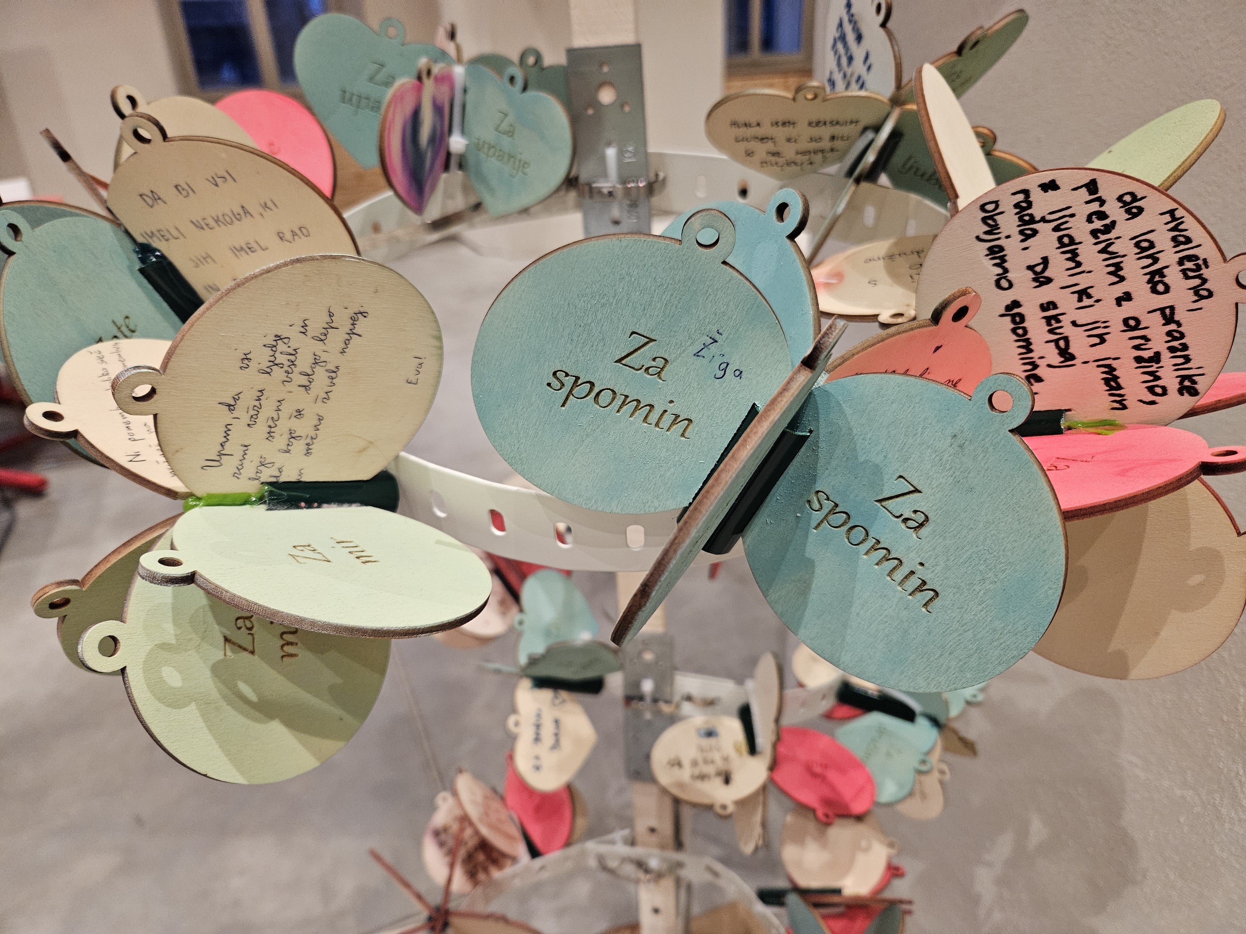 Mladi zmaji vabijo na ogled umetnine, nastale iz lesenih okraskov skupnostne akcije Drevo hvaležnosti, ki je v decembru 2025 potekala na pokopališči Žale. Umetnino si lahko do 22. aprila 2026 ogledate v pritličje novega osrednjega mladinskega centra BAZA, Center mladih Ljubljana.